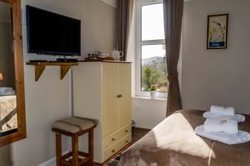 Thank you both for a lovely stay, and your recommendations re evening meals, invaluable! Great position, lovely views and great haggis for breakfast! Really enjoyed our stay, close to our daughter and parking available. Thank you again and hope to see you again. Only issue, and very minor and personal to us, would have liked instant coffee in the room for early morning until lovely coffee with breakfast. No way a criticism just personal preference. Ps. Nice touch with boot storage by the front door - we needed that after our grandsons shinty match :)